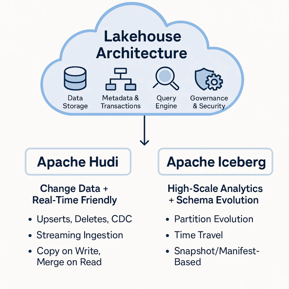 - Optimized file layout and table types (Copy-on-Write, Merge-on-Read)