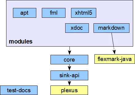 - Supports modular development through Doxia modules for each markup language