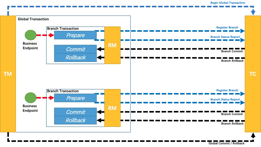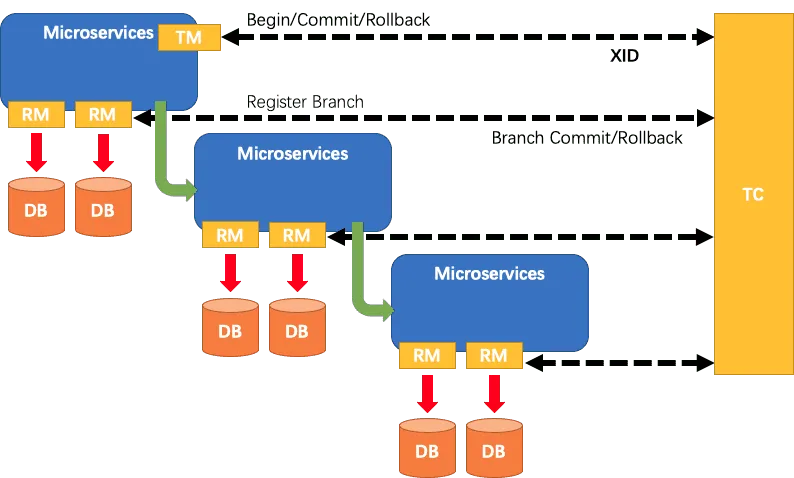 - Supports multiple transaction modes: AT (automatic compensation), TCC (Try-Confirm-Cancel), SAGA (long transactions), and XA (standard distributed transactions)