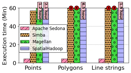 - High-Speed Processing: Benchmarks show Sedona performs 2x–10x faster than other Spark-based geospatial systems on computation-intensive workloads.
