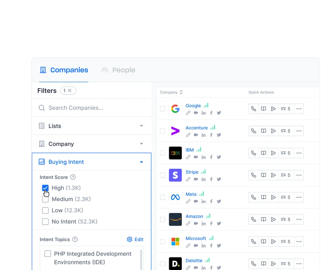 With the world's largest, most accurate B2B database of 210+ million contacts. Find perfect leads using 65+ filters and attributes, or connect your CRM to keep existing records up-to-date automatically. Replaces: ZoomInfo, Clearbit, Lusha, Cognism, Seamless
