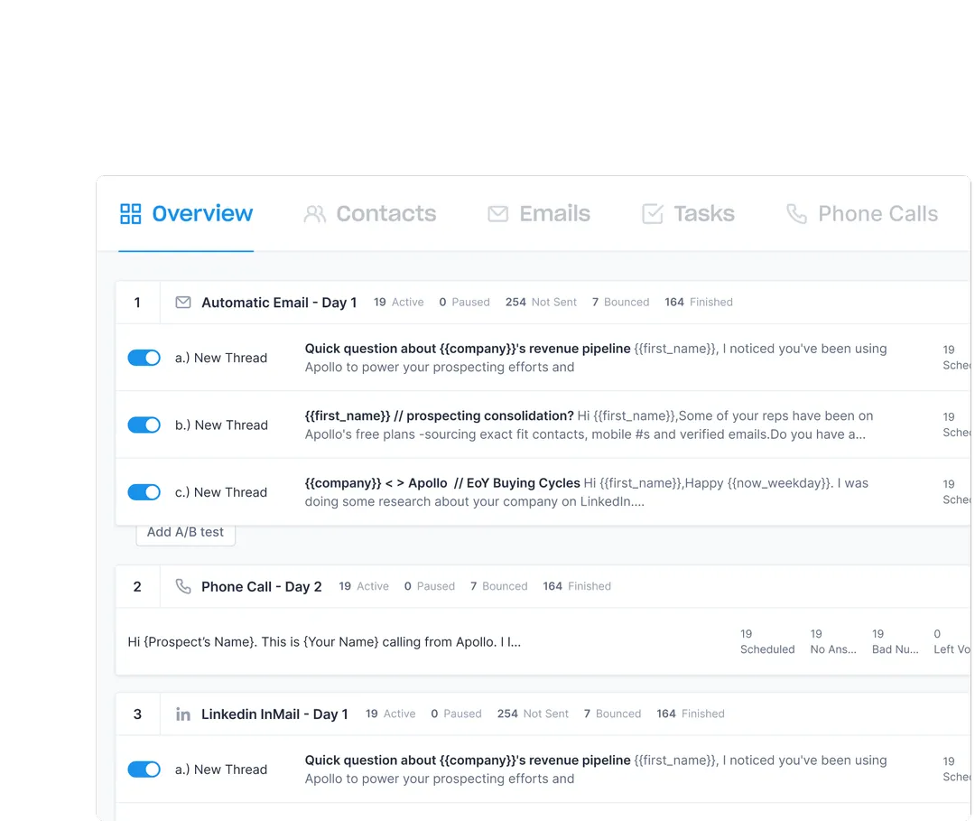 Everything you need to build and close pipeline: sequences, emails, calls, social, and task management, all in one place. Replaces: Outreach, SalesLoft