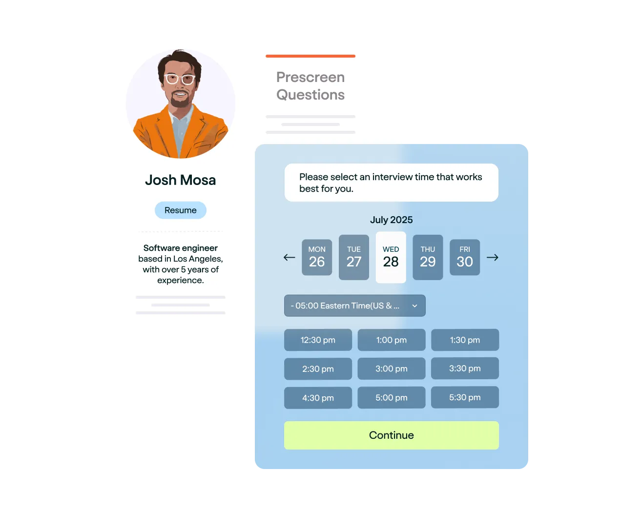 - Communicate via text and email, and auto-schedule interviews with top candidates.