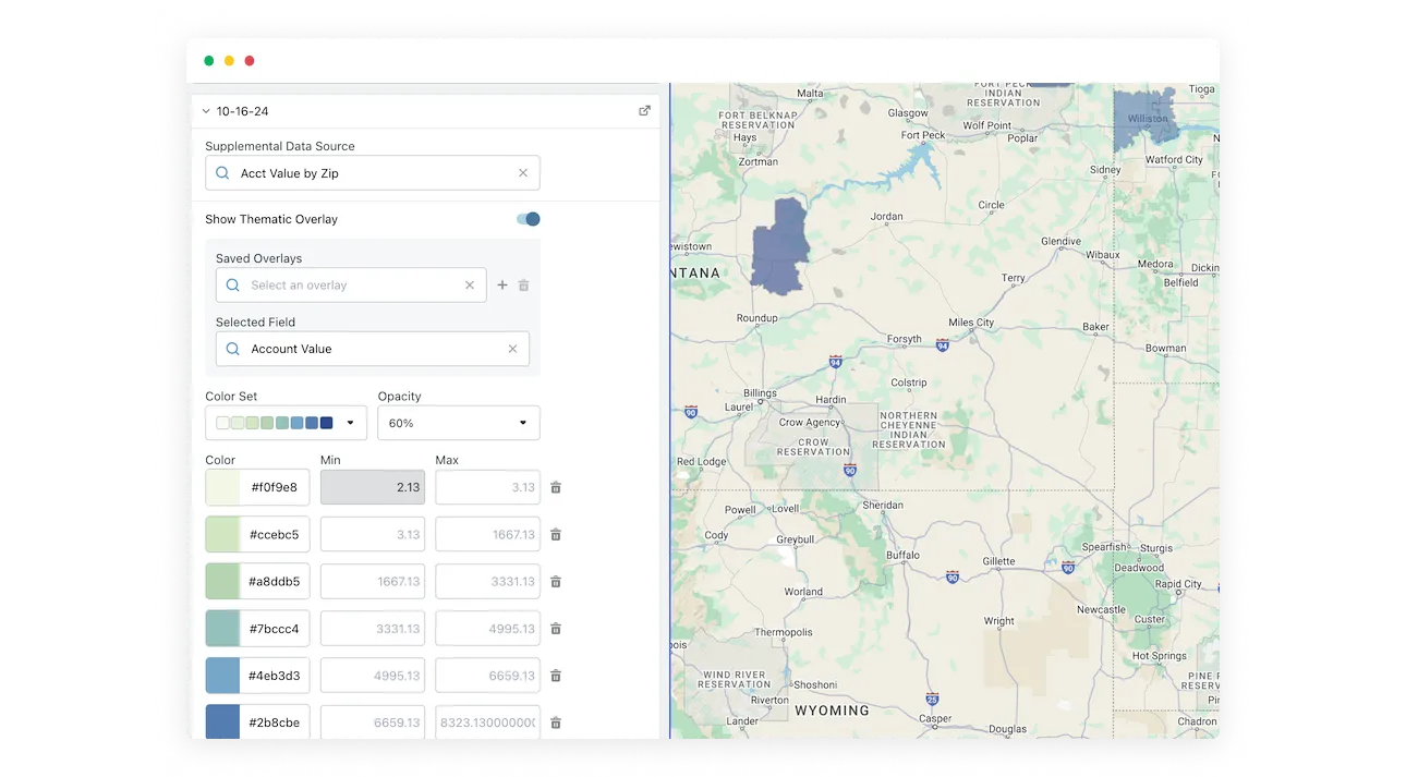 Bring your data to life with color-coded overlays, making it easy to spot trends, compare regions, and make smarter territory decisions.