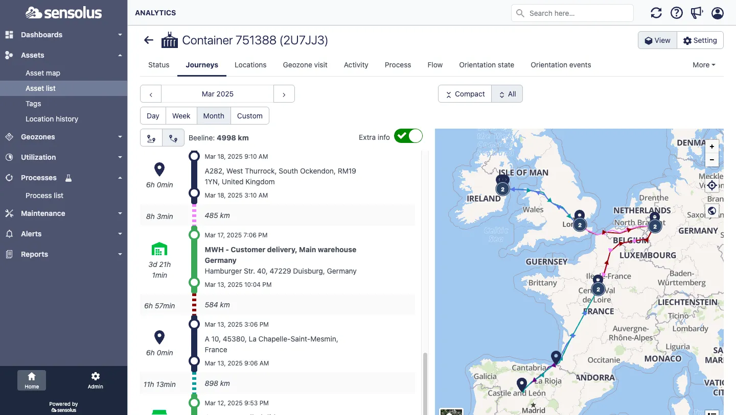 - Historical Journey Insights: Analyze asset movement patterns to optimize logistics and reduce idle time.