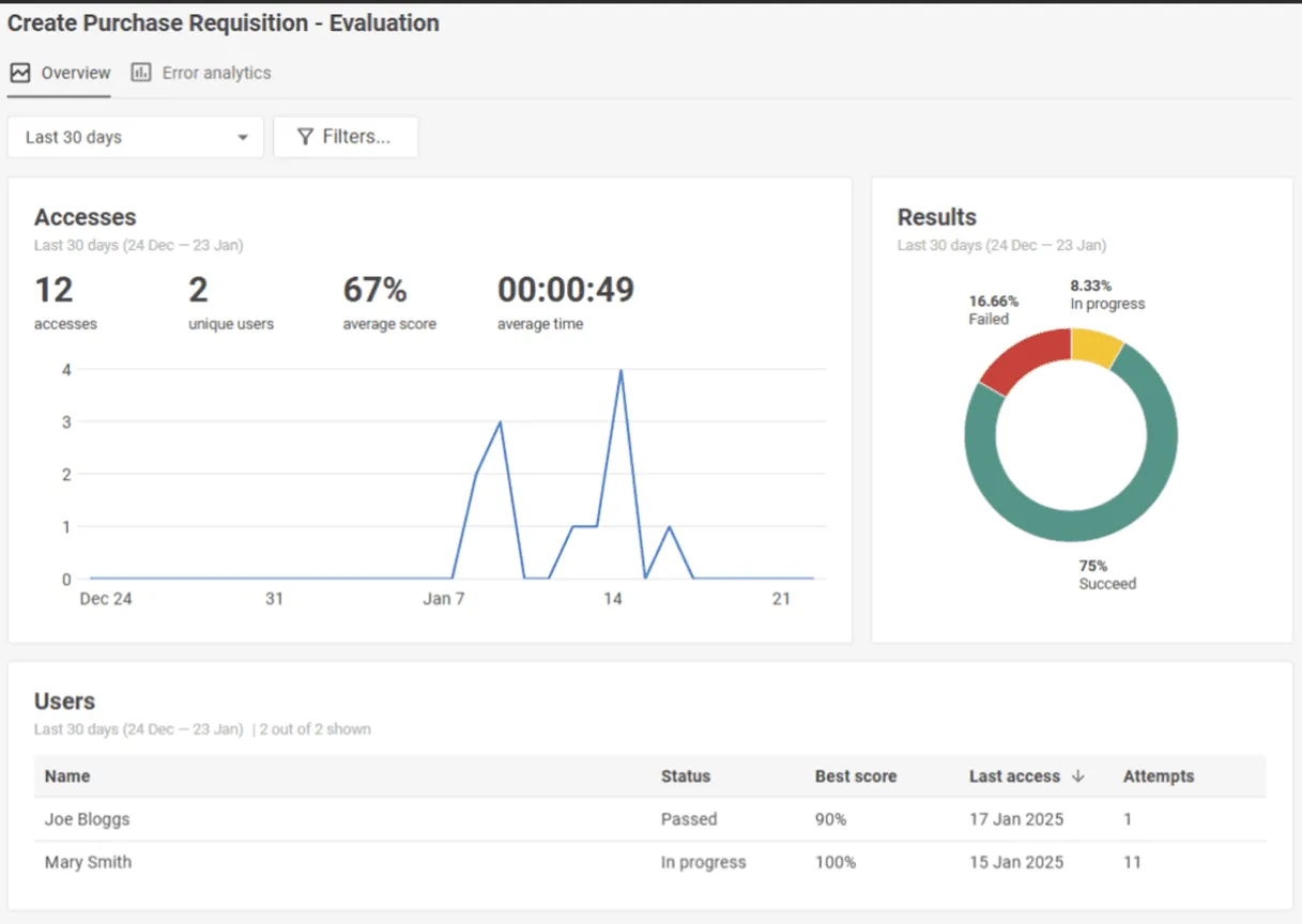 - Insight: Gain actionable insights to continuously improve training experiences. Track actions and content usage in real-time to prove your impact.