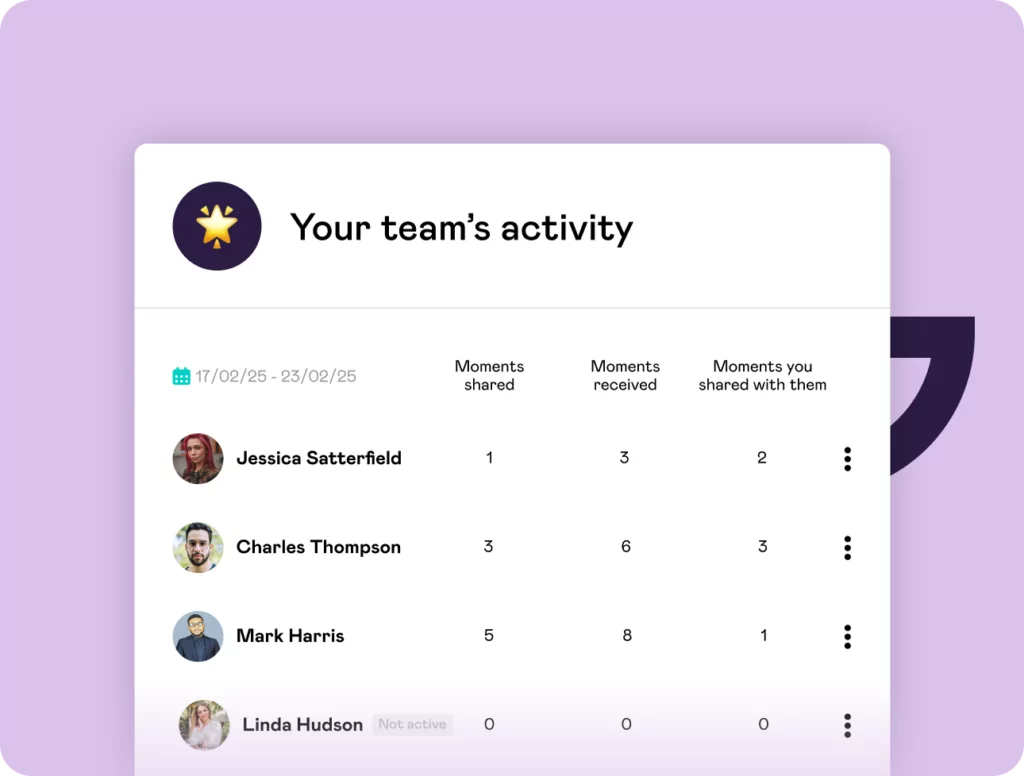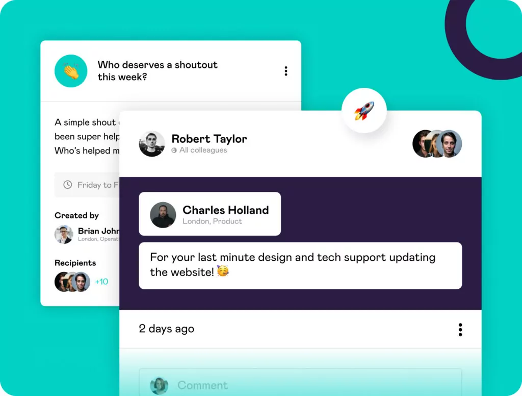 - Effortless Recognition: Surfaces celebrations, milestones, and prompts to facilitate daily appreciation.