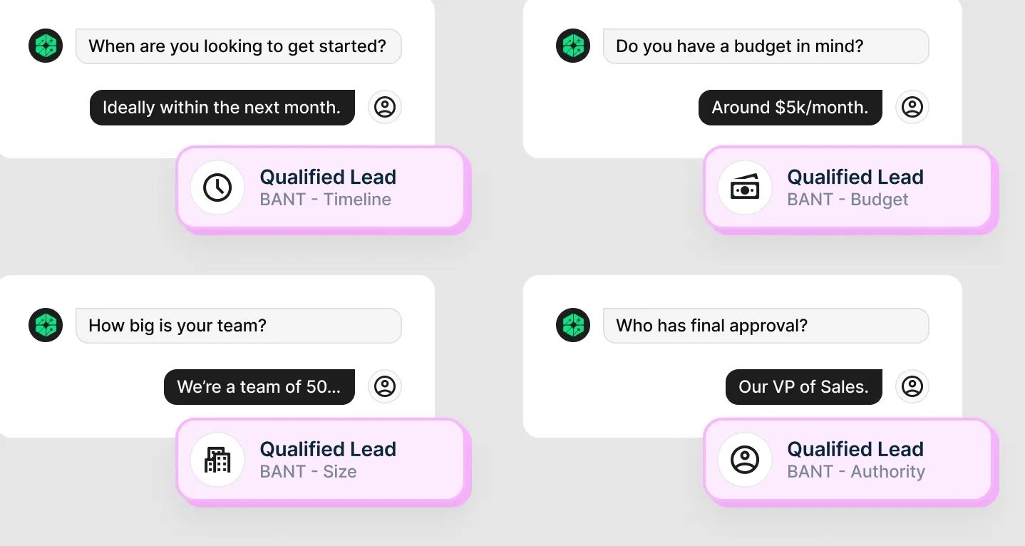 - Conversational Lead Qualification: AI agents ask targeted questions to capture intent and qualify leads without manual filtering.