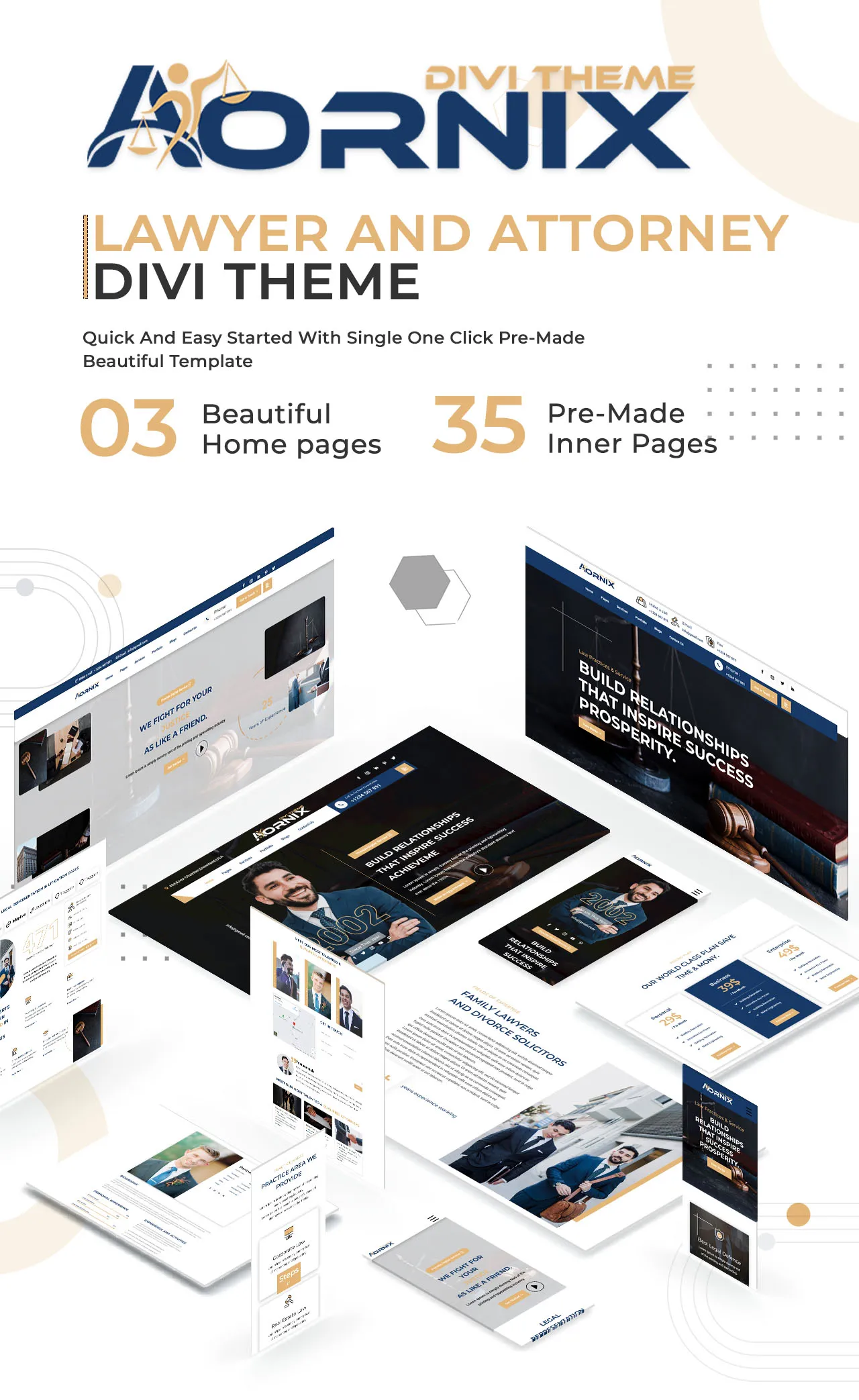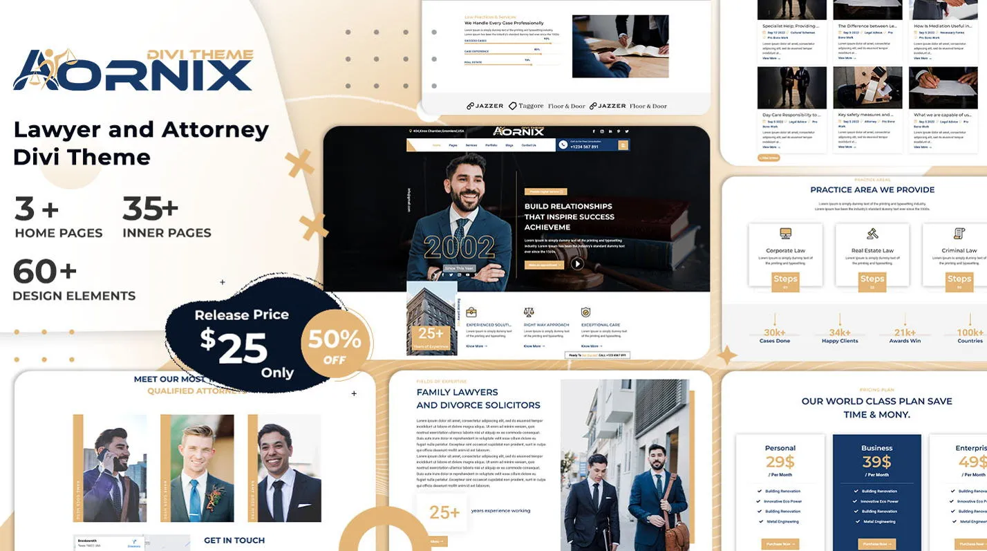 Attornixus is a powerful and modern Divi theme with different home demos and excellent features. The theme’s business design is also perfect for an Lawyer divi theme suitable for Law, Lawyers or any kind of Law related business or company. The template layout contains custom made pages for Law Firm niche, like Practice , Case , Attorney. Get Best Divi Attorney Agency Theme Today !