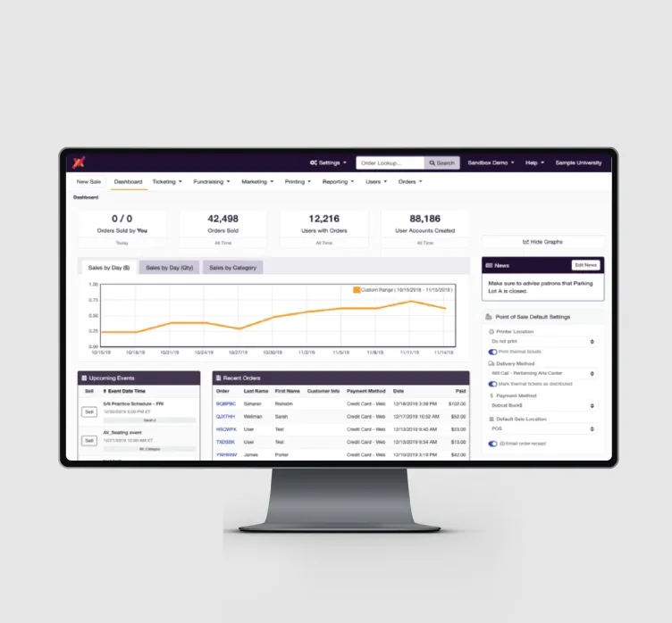 Whether you’re selling individual tickets, event packages, group sales, discounts, gift certificates, or promotions, AudienceView Campus provides flexible box office tools to meet your specific needs. Choose between general admission or assigned seating options and customize tickets with advertisements or relevant information.