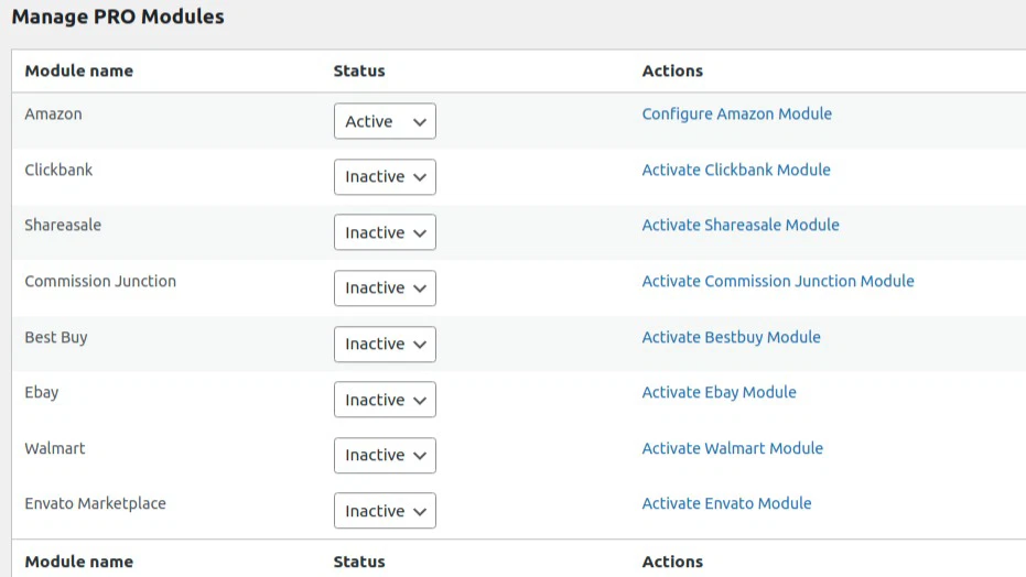 - Supports Amazon, ClickBank, eBay, ShareASale, CJ, Walmart, Best Buy, Envato