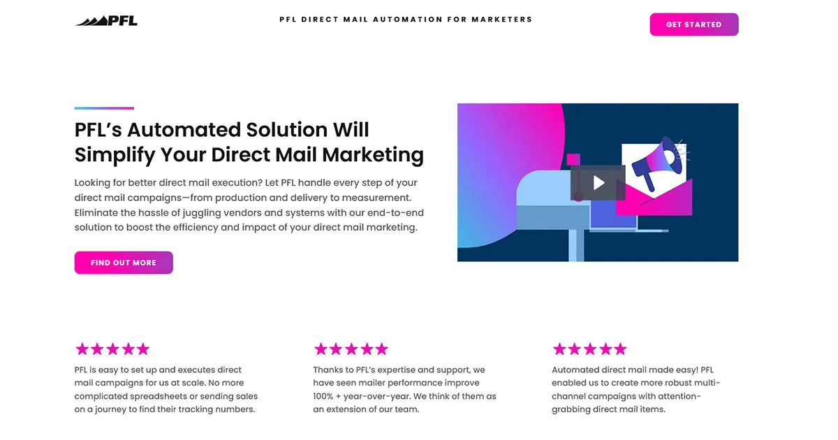 PFL’s Automated Direct Mail platform helps marketing teams build pipeline faster by using data to personalize and trigger high-impact mail programs. It integrates with CRM and MAP systems to orchestrate direct mail in harmony with digital channels, reducing manual effort and improving engagement.