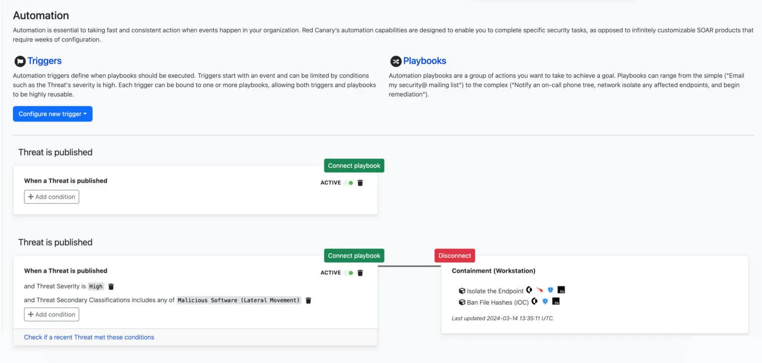 Triggered actions contain threats within seconds of Red Canary confirming malicious activity.