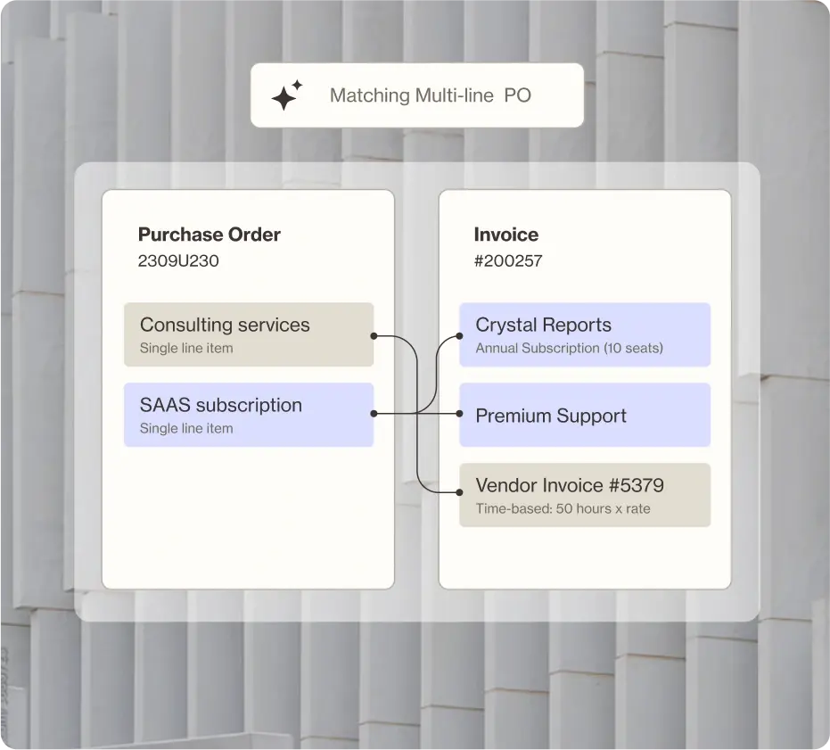 Three-Way Matching Validates invoices against purchase data.