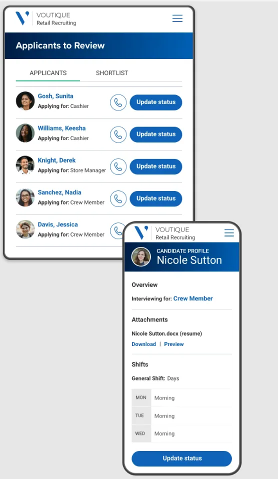 Give store managers on-the-go access to the Hiring Manager Site’s key features, even while offline: review candidates, schedule interviews, extend offers and more.