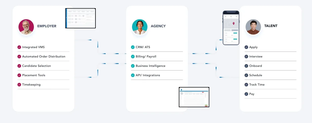 A Unified Platform to Power Your Entire Staffing Operation. Every tool your staffing agency needs, from employer to agency to talent – and back.
