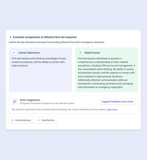 aXcelerate AI is an integrated artificial intelligence solution embedded within aXcelerate’s award-winning Learning Management System (LMS) and Student Management System (SMS). It is designed to enhance learning delivery, streamline assessment processes, and boost operational efficiency for training organisations. With a strong focus on secure and compliant training management, aXcelerate AI supports educators and administrators in delivering smarter, faster, and more personalised learning experiences.