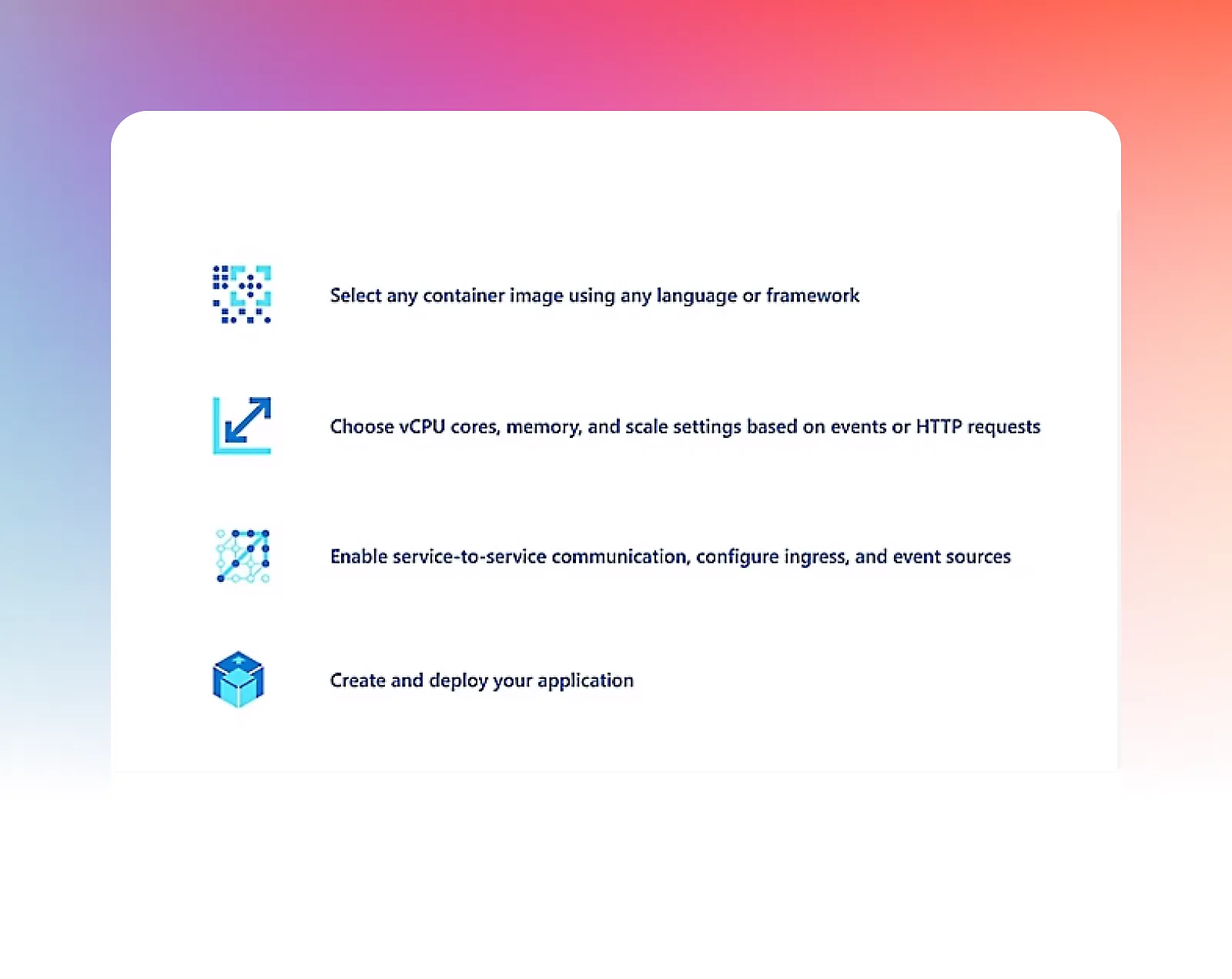 - **Open-source foundation and add-ons: **Get greater extensibility, built-in support for Distributed Apps Runtime (Dapr) and Kubernetes Event-driven Autoscaling (KEDA), and full app lifecycle management.