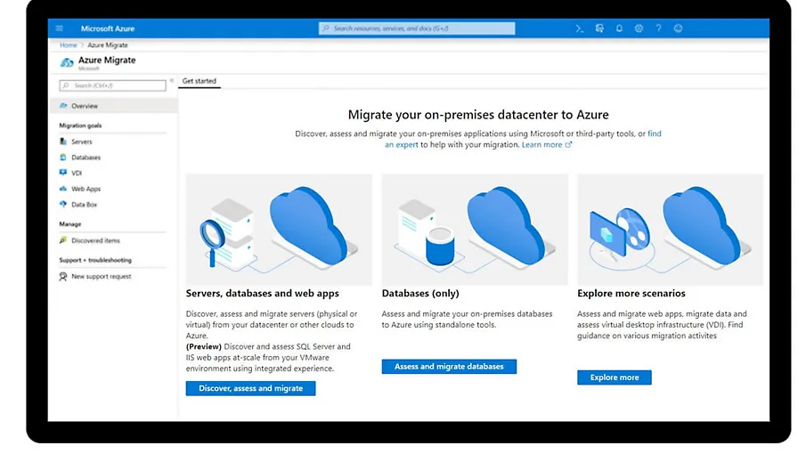 - Database-sensitive migration service moves data, schema, and objects to Azure