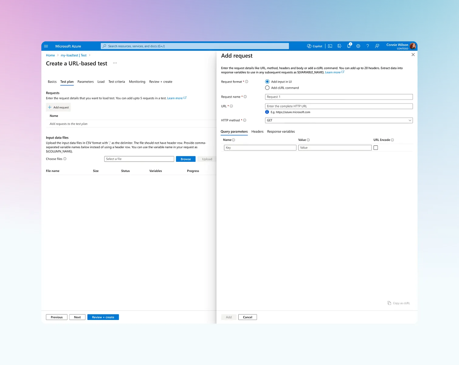 - **Quick URL-based testing: **Quickly create load tests simulating your user flows by configuring HTTP requests within the Azure portal.