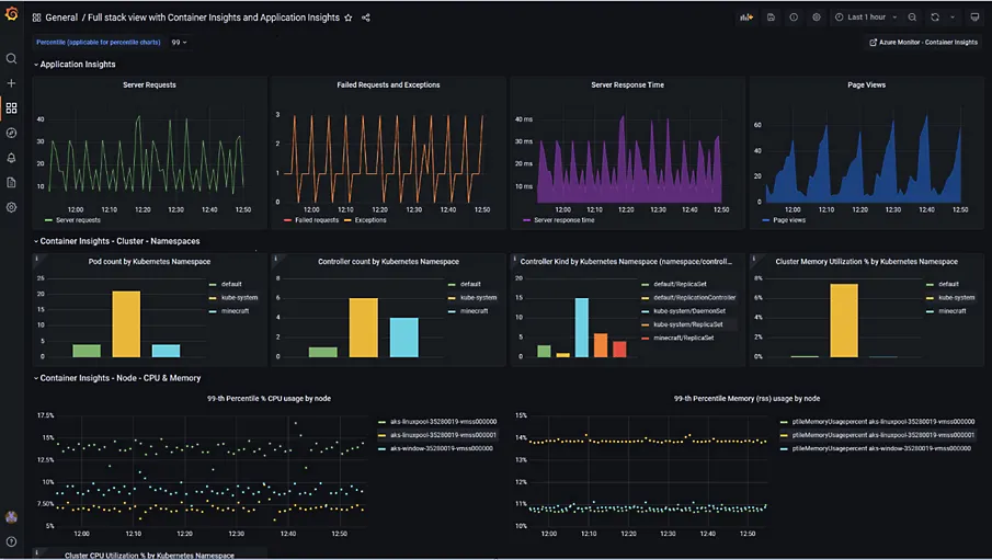 Azure Managed Grafana is a fully managed service for analytics and monitoring solutions. It's supported by Grafana Enterprise, which provides extensible data visualizations. Quickly and easily deploy Grafana dashboards with built-in high availability and control access with Azure security.