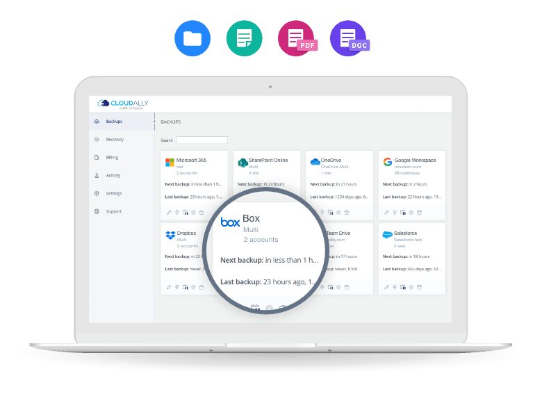 Automated or on-demand backup of all your Box data and folders. Single repository backups.