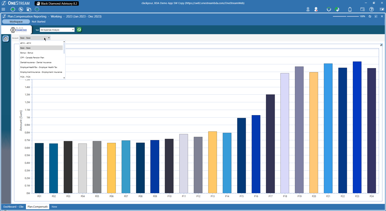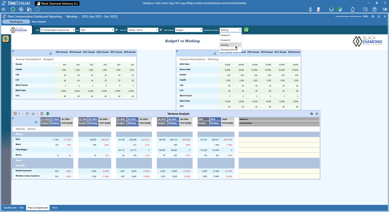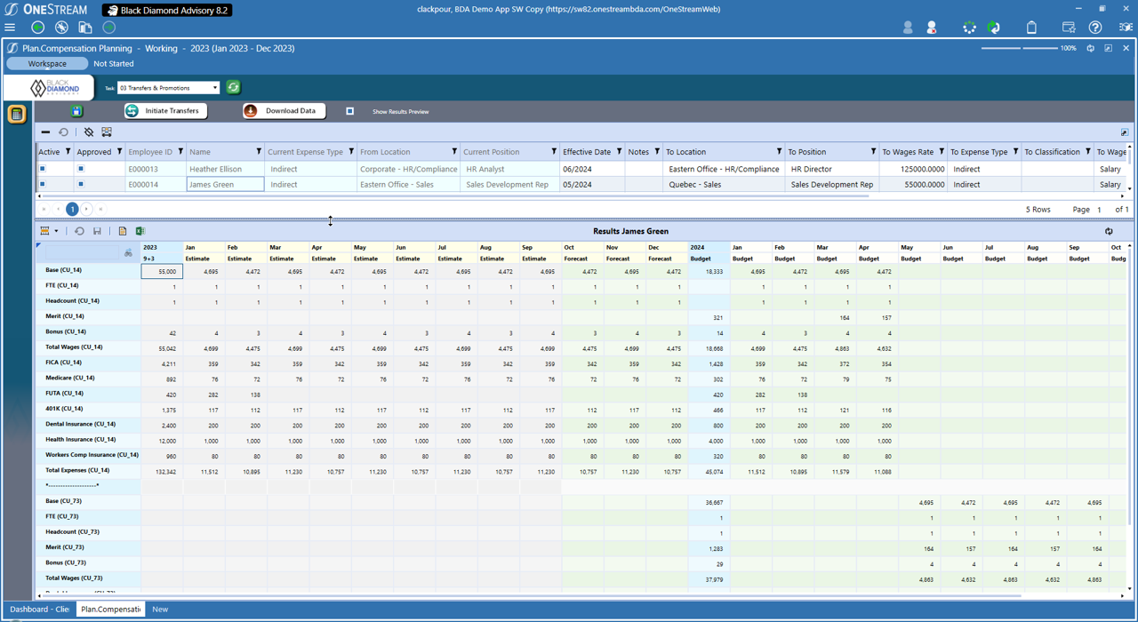 BDA Compensation is a workforce planning solution developed by Black Diamond Advisory to streamline employee compensation and travel expense planning. It provides a guided, secure, and dynamic environment for managing salary data, workforce changes, and related financial planning. The solution integrates seamlessly with OneStream, enabling real-time updates and advanced reporting for smarter, faster decision-making.