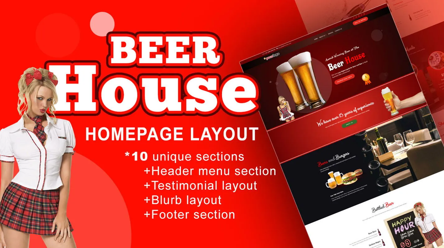 Beer House Homepage layout was made to attract customers to your website with 10 sections and unique Blurb module layout. It was designed for local business such as restaurant or bar website.