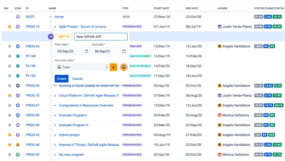 - Unlimited initiative templates (Box types) for leading management methodologies: Classic, Scrum, SAFe®, LeSS and more