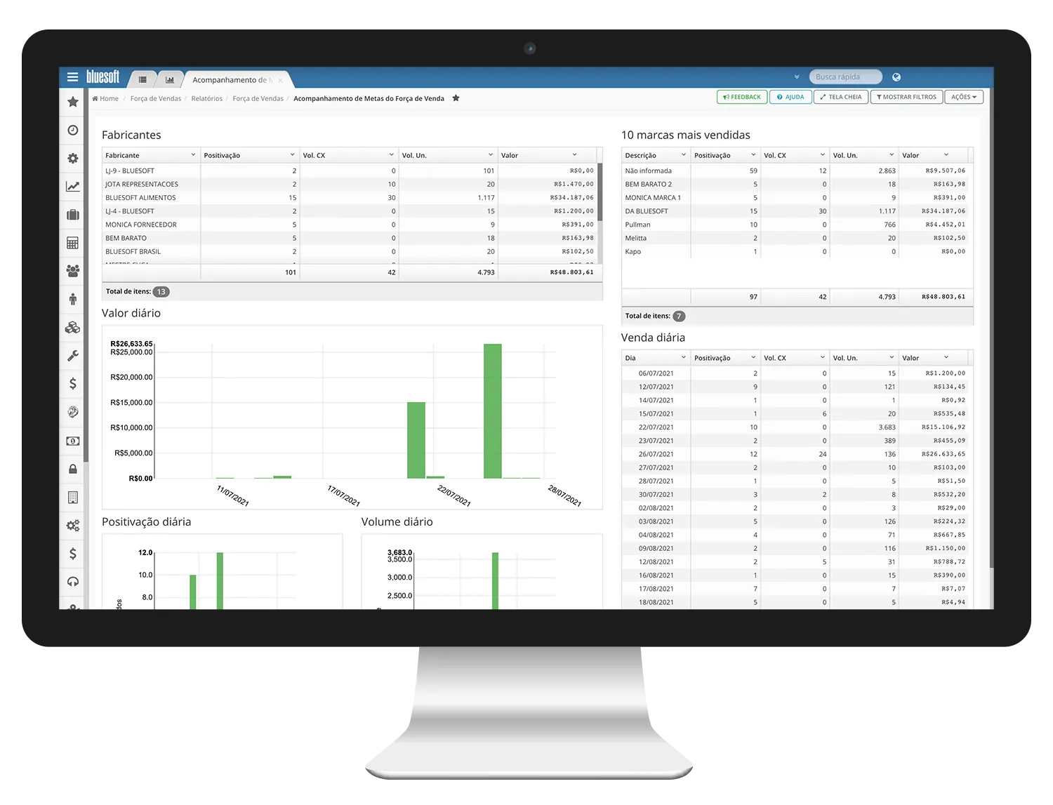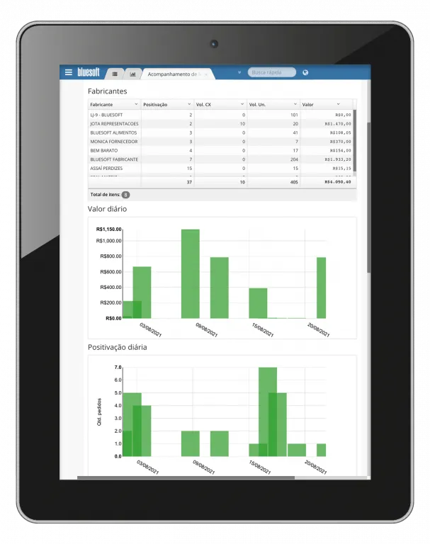 Cloud-based sales force automation tool integrated with Bluesoft ERP for mobile order entry and real-time sales tracking.