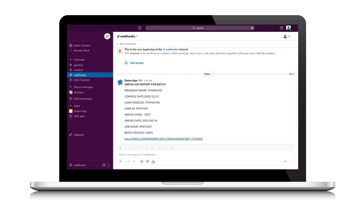 BMC AMI DevX Abend-AID provides automated failure alerts via Slack, Teams, or ChatOps with links to root cause analysis, speeding up remediation time. Additionally, the tool allows for automated trouble ticket creation via webhook notifications into BMC Helix ITSM, Jira®, and ServiceNow, keeping everyone on the same page and reducing the chances of miscommunication or missed steps in the resolution process.