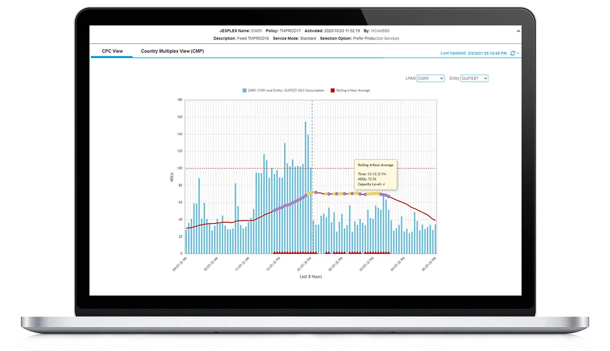 - Minimize rolling 4-hour average (R4HA) processing peaks with or without capping to reduce monthly license charges