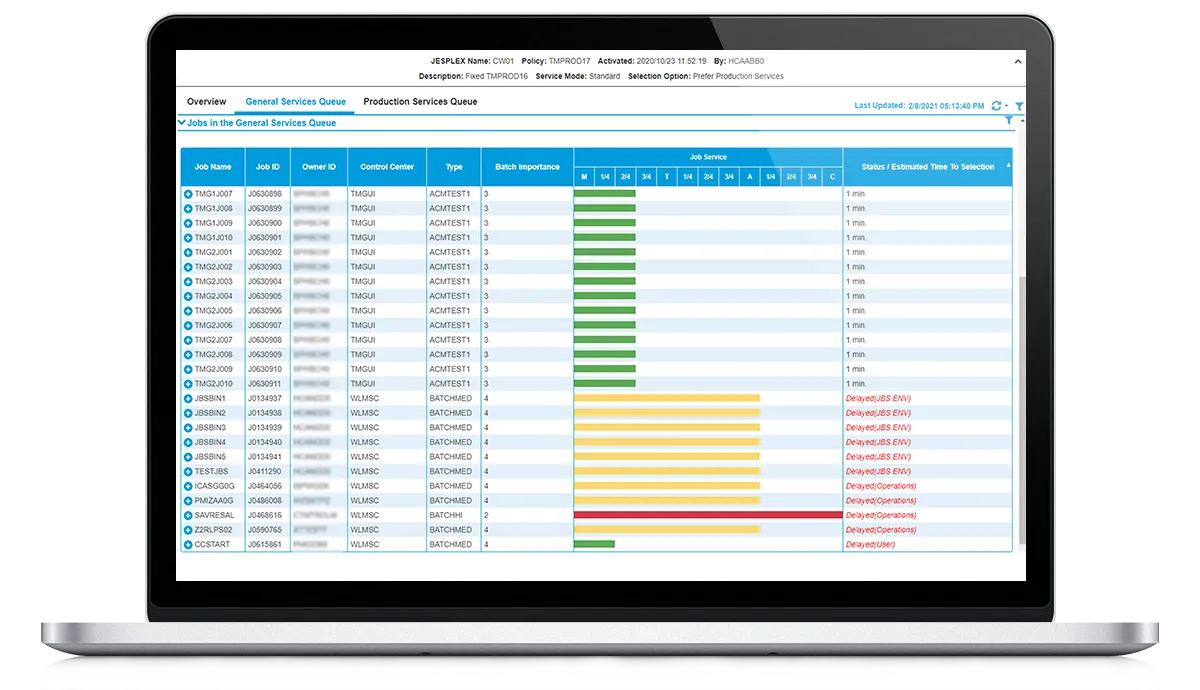 - Provide real-time insight into batch execution progress, potential problems and delays, and trends in peak usage