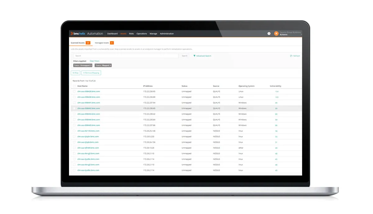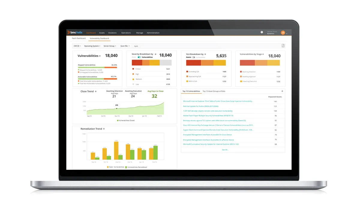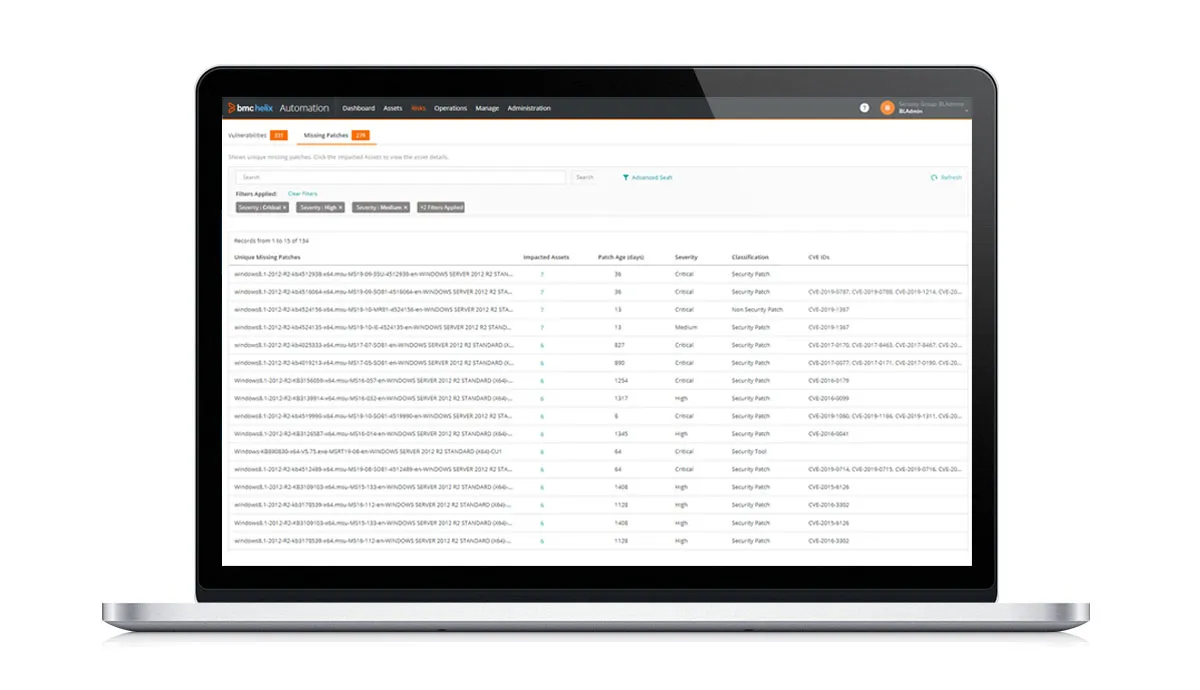 BMC Helix Automation Console (previously Vulnerability Management) simplifies patching, quickly remediates security vulnerabilities, and ensures compliance using automation and advanced analytics.