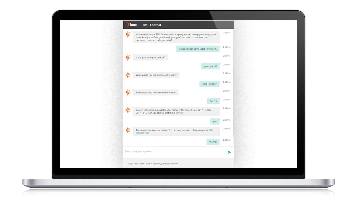 - Have intelligent conversational experiences through BMC Helix Virtual Agent