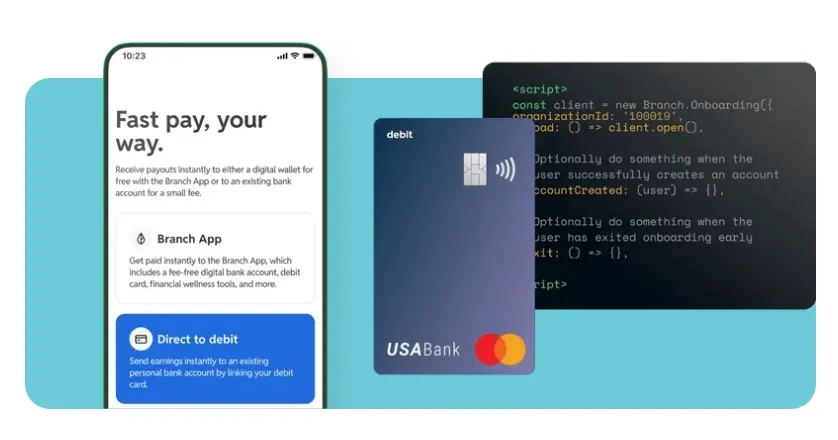 Branch Direct allows you to make fast payouts directly to your workers’ existing bank accounts. Workers can quickly receive their earnings after linking an active debit card.
