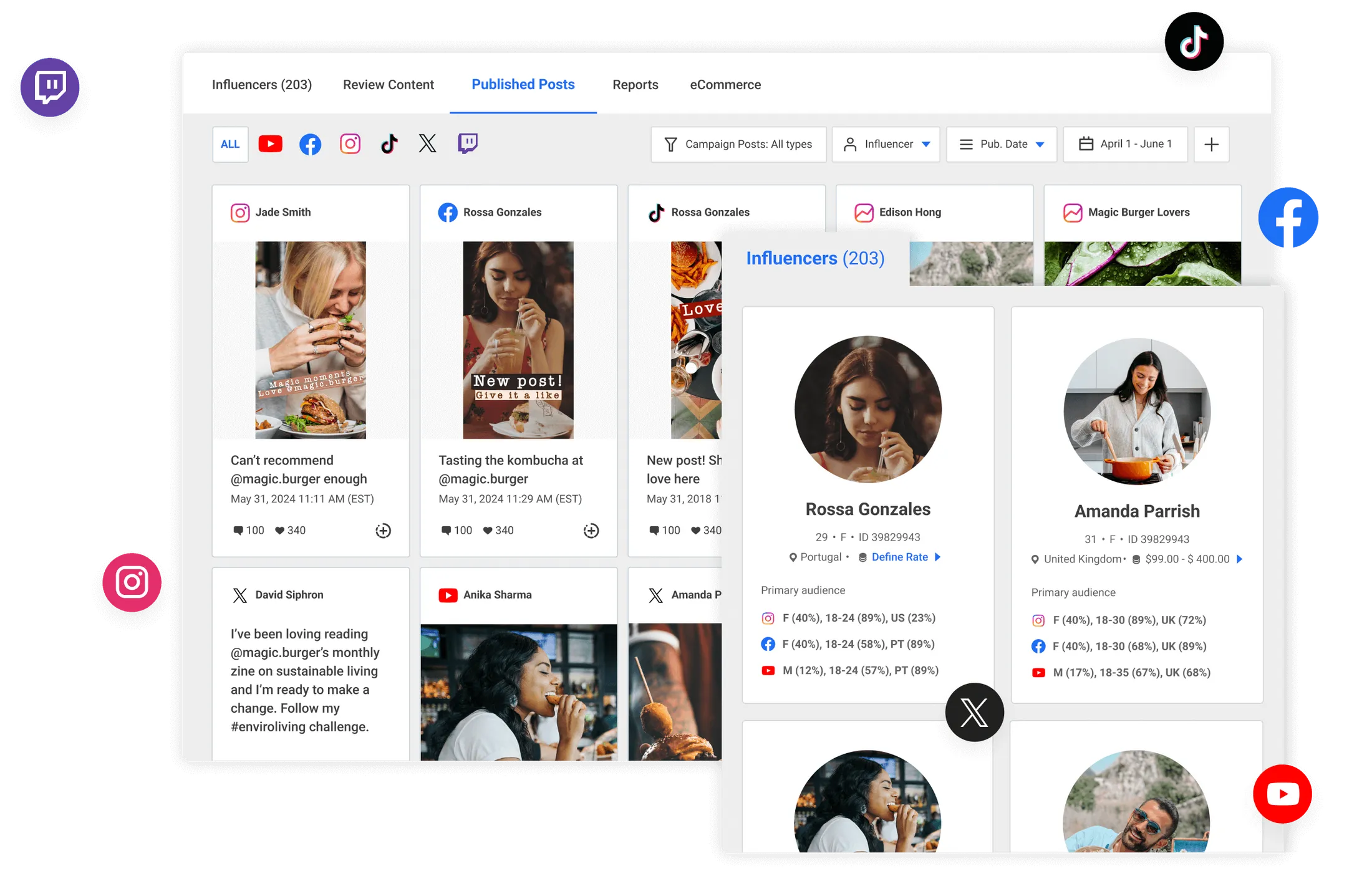 This component enables businesses to identify relevant influencers and manage campaigns to maximize their reach and impact. Discover influencers, handle relationships, and manage campaigns all in one end-to-end solution. Features