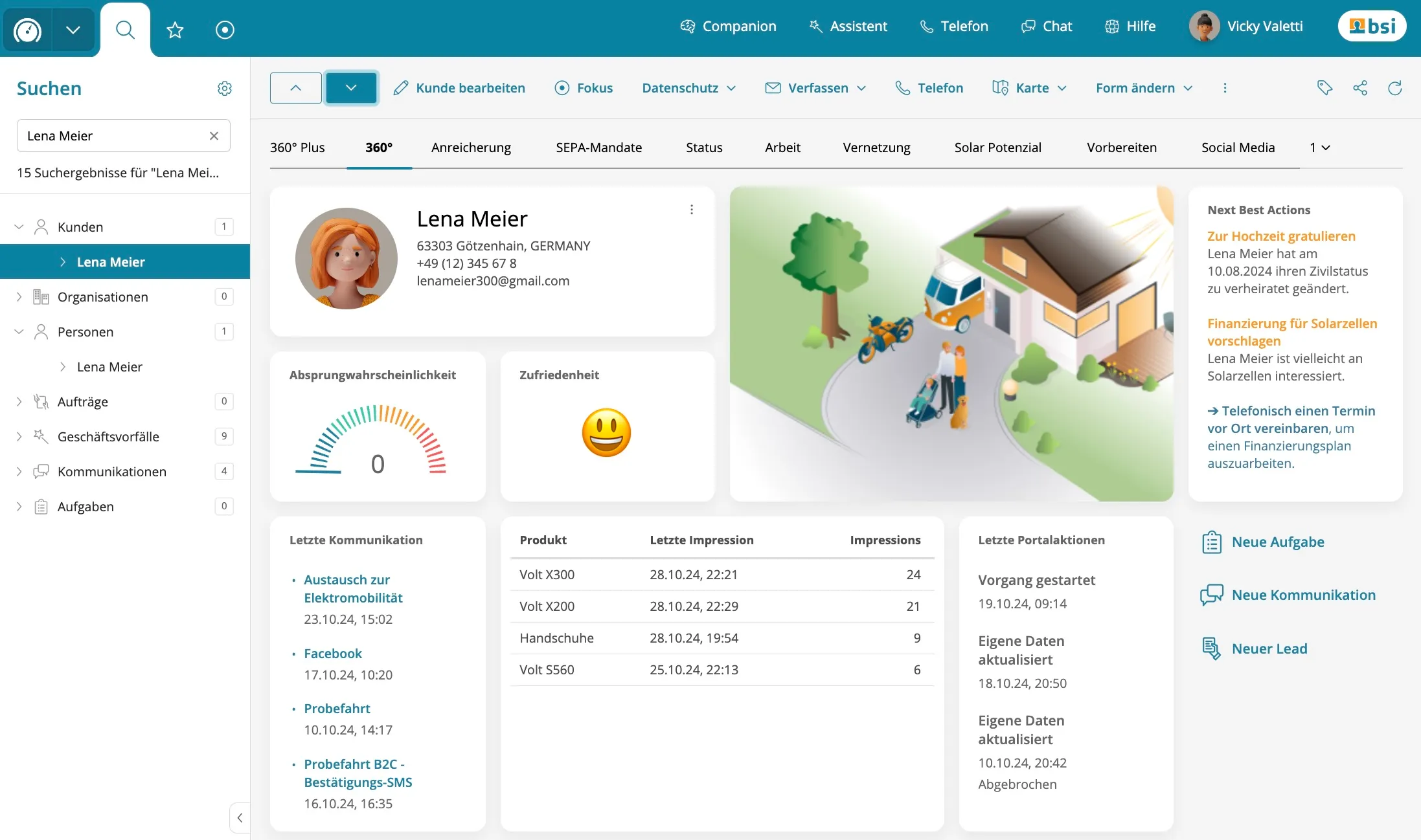 BSI Customer Suite is a comprehensive CRM and CX platform built to centralize customer data, automate personalized journeys, and apply AI-driven insights across sales, service and marketing. It provides a unified 360° customer view, low-code integration capabilities, industry-specific configurations (BSI Elements), and embedded AI agents to scale personalized interactions in real time across channels.