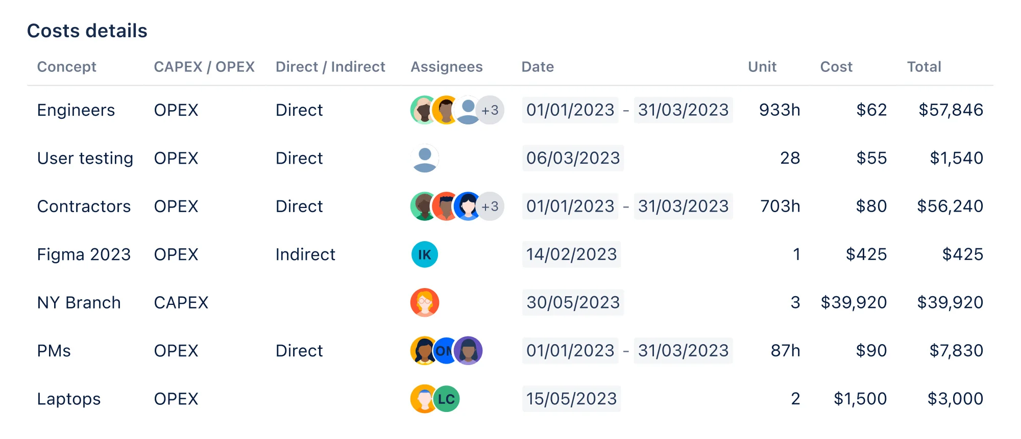 - Improved Financial Visibility: Classify and track costs with detailed breakdowns.