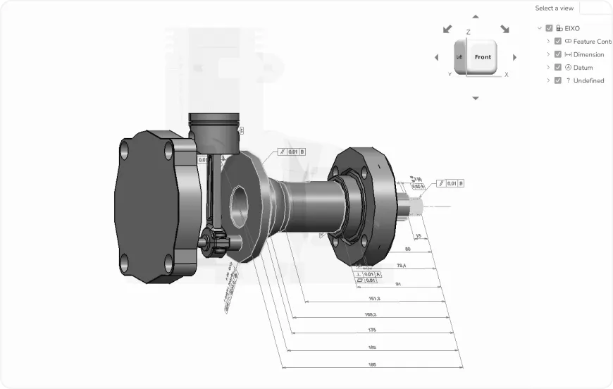 - Provides full access to B-Rep and polygonal geometry within a customizable 3D viewer, allowing users to browse part-assembly structures, query component properties, and explore PMI through saved views or individual annotations.