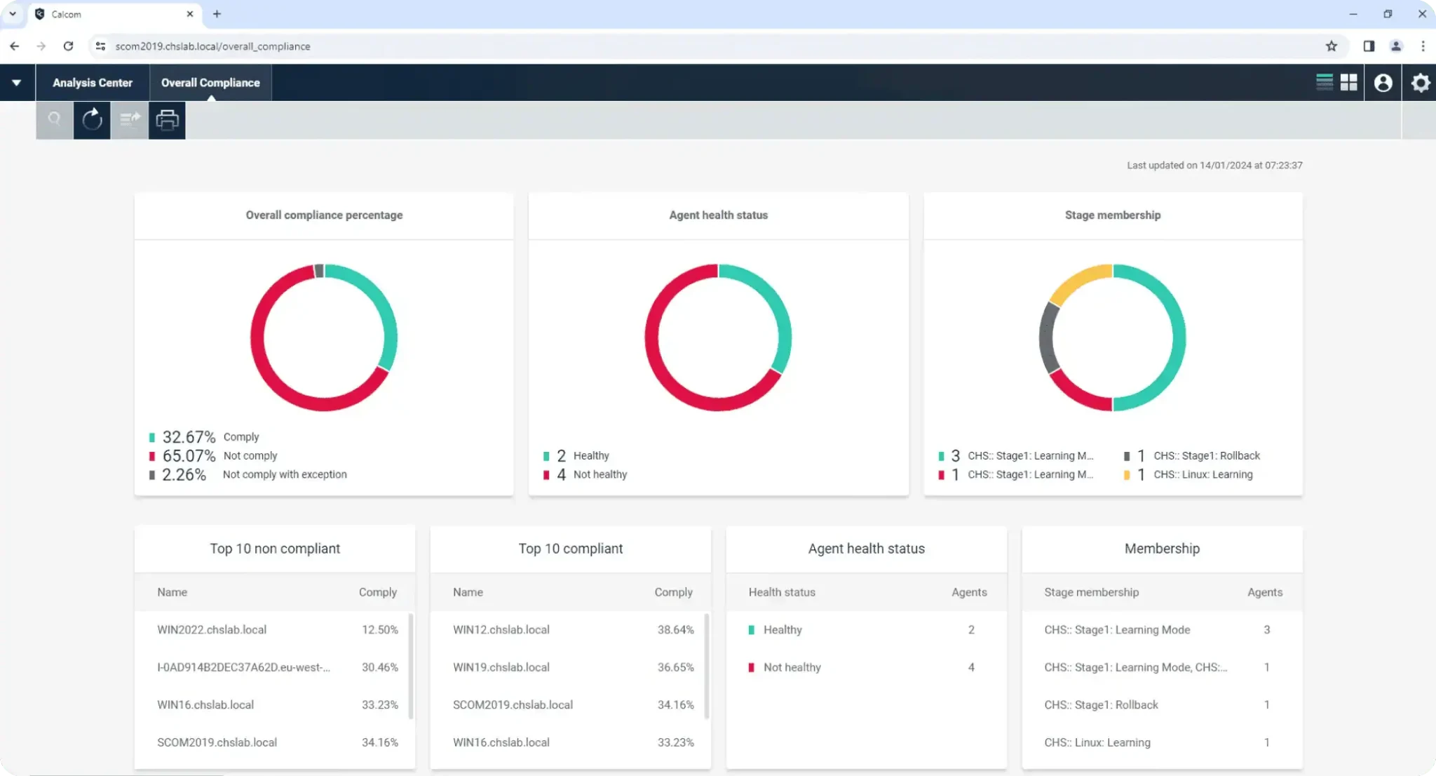 - Displays the organization’s overall compliance score and identifies top compliant and non-compliant servers to streamline risk management.