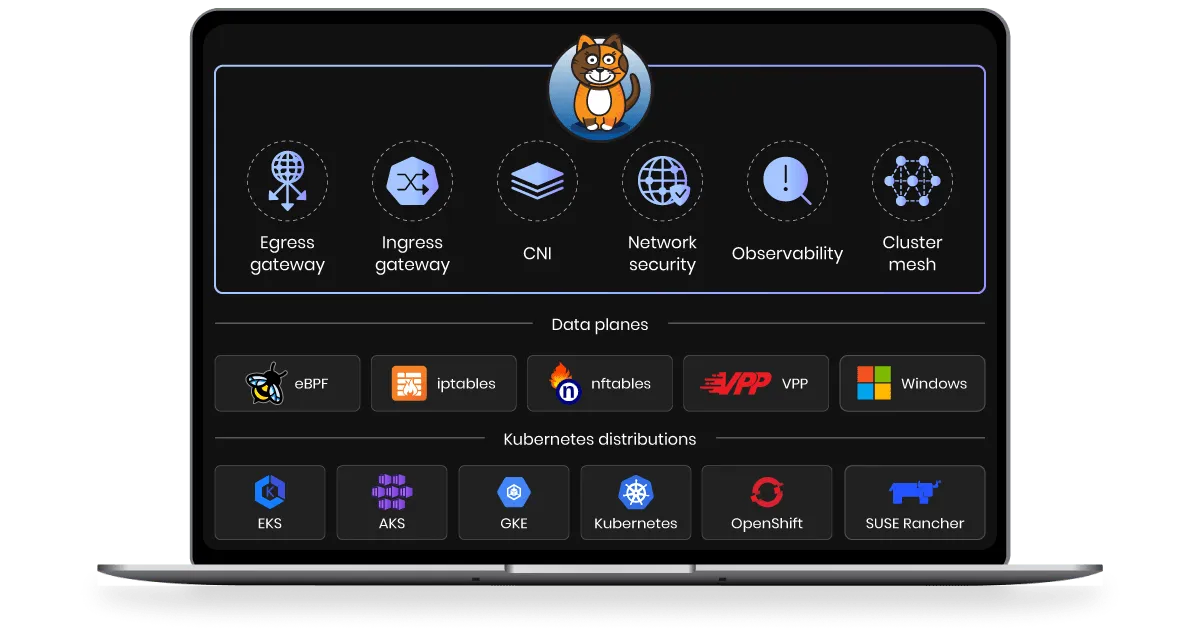 - Policy Management: Simplifies network policy enforcement and microsegmentation.