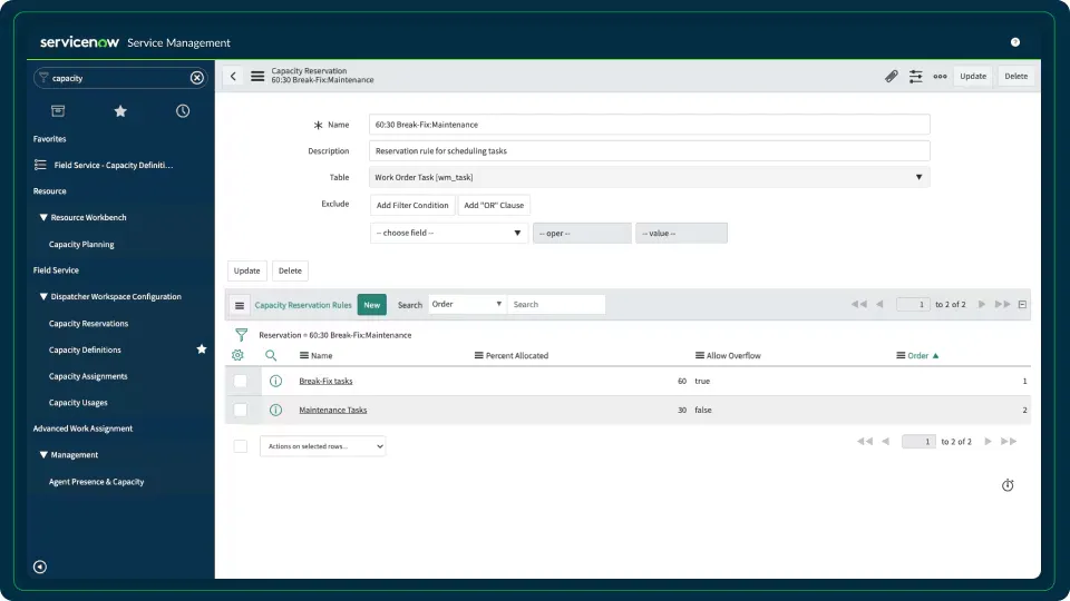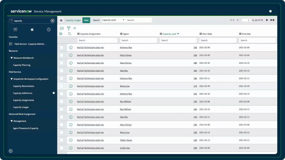 ServiceNow's Capacity and Reservations Management is a component of their Field Service Management solution, designed to streamline and optimize field service operations through digital transformation and workflow automation.