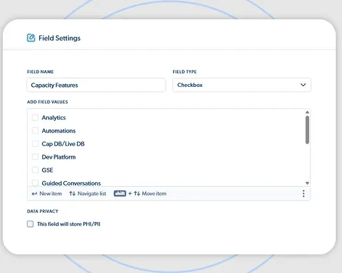 - Support for text, dates, dropdowns, booleans, and dependent fields.