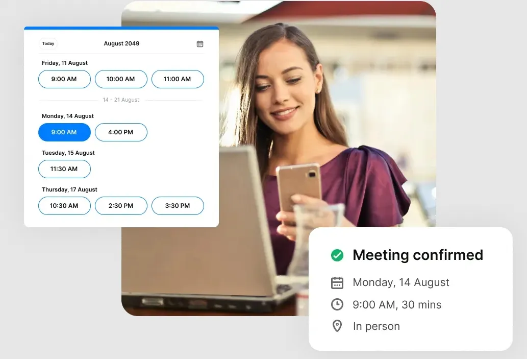 - Intelligent Meeting Routing: Automatically connects customers to the best available team member, balancing workloads and improving response times.