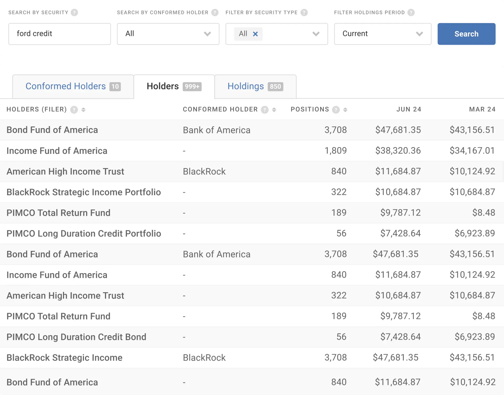 - Track fund manager data via Form ADV, 13F, and D screeners