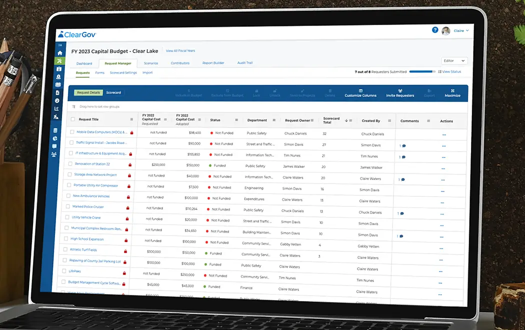 ClearGov Capital Budgeting is a cloud‑based solution designed to help public sector organizations plan, evaluate, and prioritize capital projects with clarity and structure. It enables departments to submit project requests consistently, while finance teams can compare needs, assess long‑term impacts, and build multi‑year capital improvement plans.