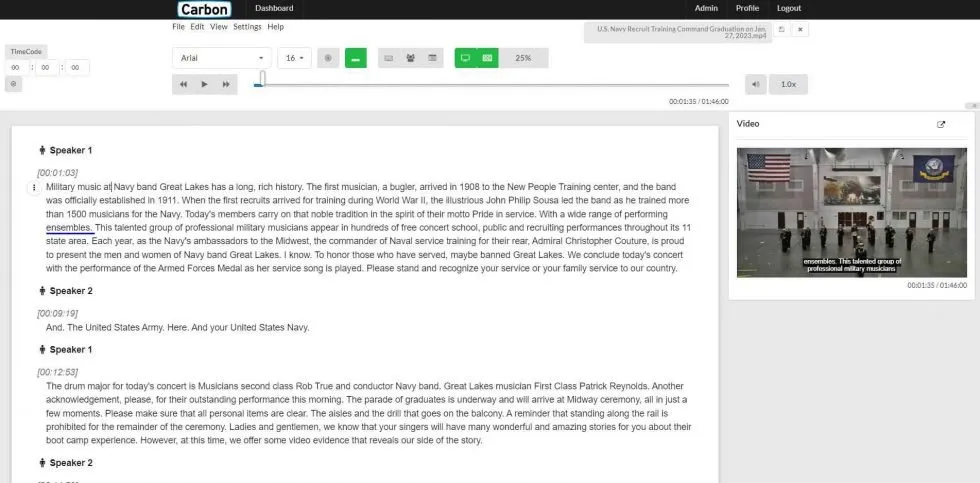 Out of the box, Carbon is built for Media. Carbon is a user-friendly speech-to-text content creation platform that cuts production costs and timelines.