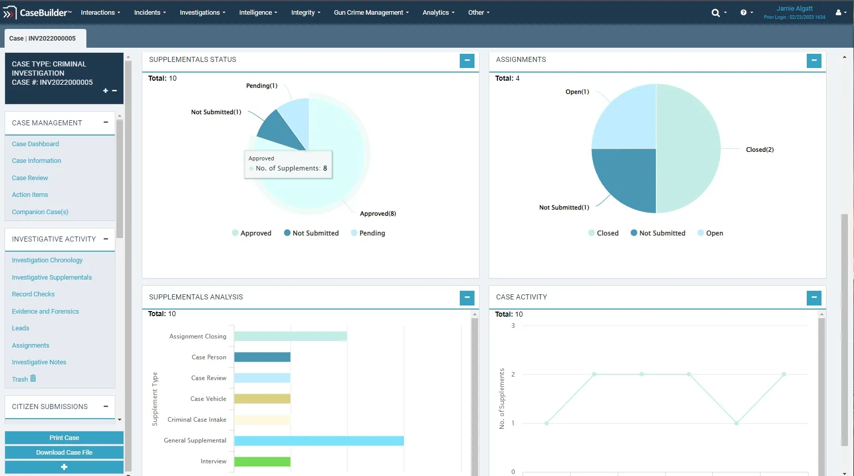 - Supervisory Reporting: Manages staff caseloads, tracks case status, and provides data for briefings.