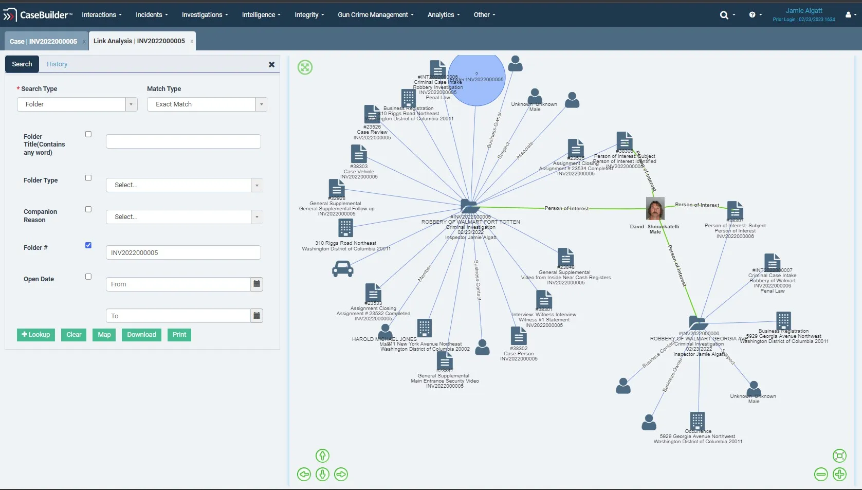 - Advanced Analytics: Detects relationships between people, places, and evidence to solve cases faster.